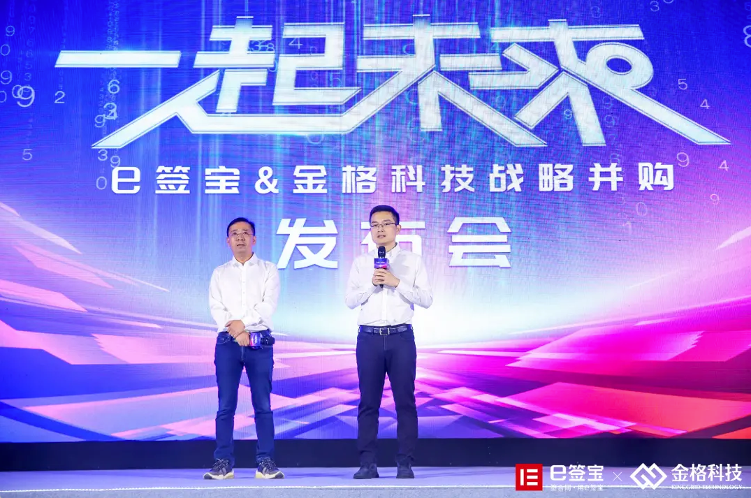 2021 年9月15日,e签宝与金格科技联合宣布,双方已经完成战略合并,金格科技CEO刘绍军出任e签宝副总裁,将负责金格产品线、信创产品线的战略决策与支持。e签宝创始人兼CEO金宏洲表示,战略合并后,e签宝将采取“双品牌”战略,即e签宝面向大众领域,金格科技则以专业品牌服务信创及政务市场。